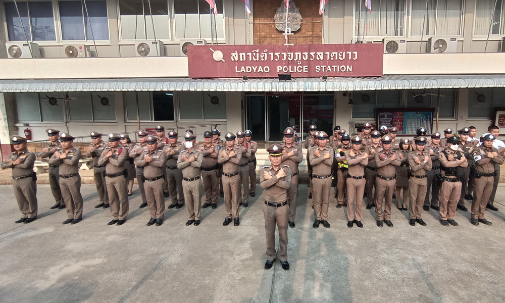 วันที่ 19 กุมภาพันธ์ 2568 สถานีตำรวจภูธรลาดยาว หลังจากเคารพธงชาติ มอบหน้าภารกิจในการปฏิบัติหน้าที่