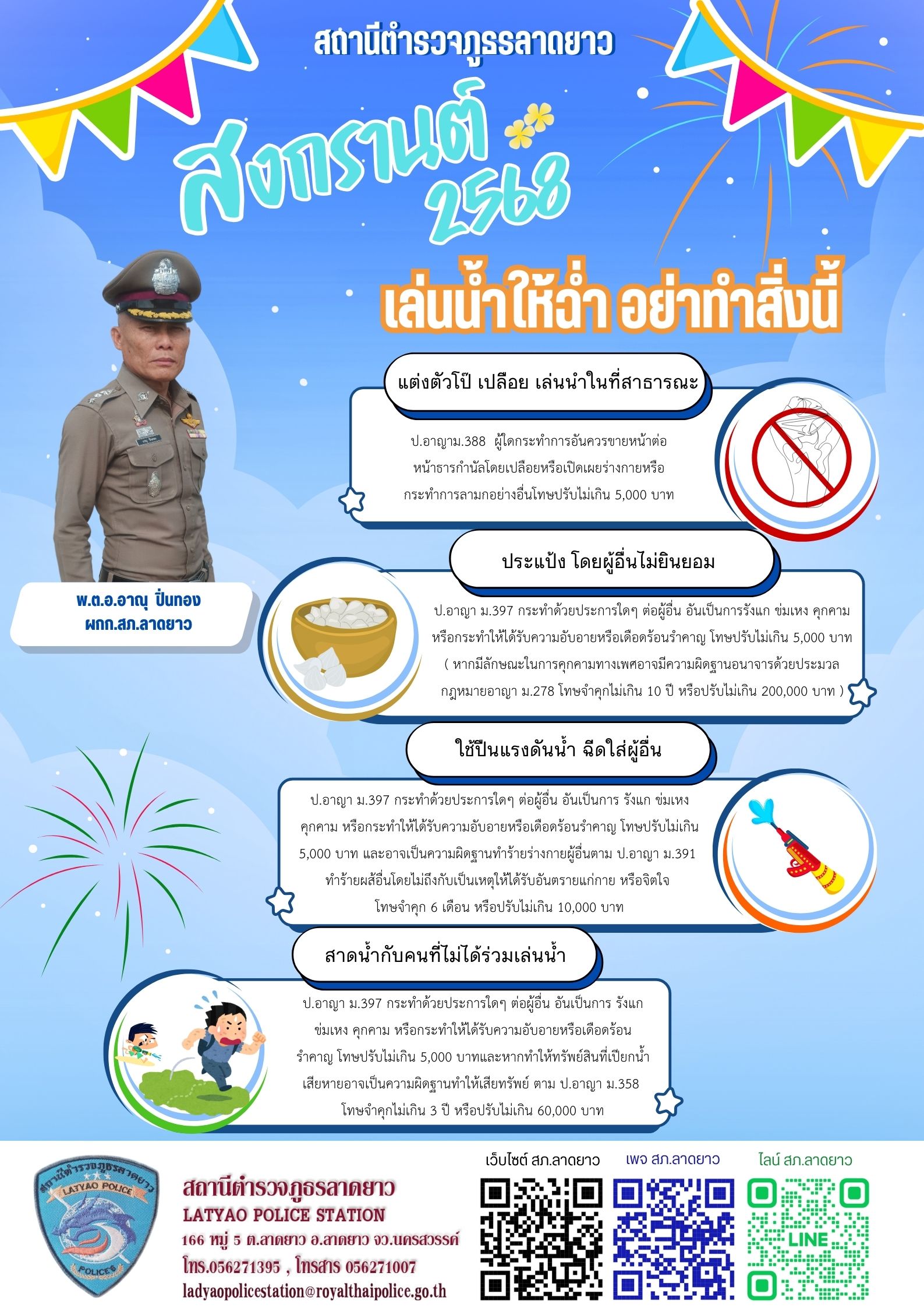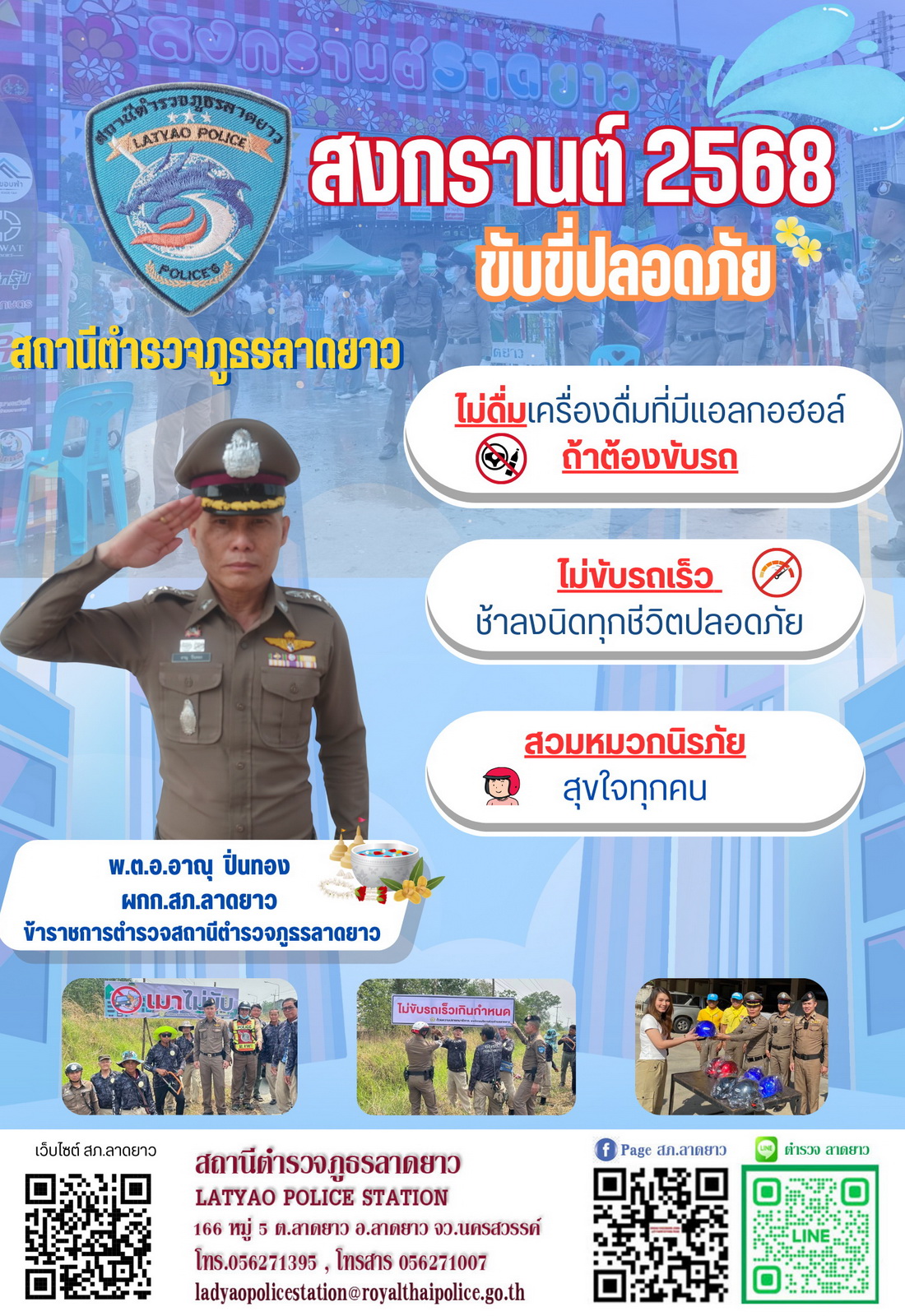 13 เมษายน 2568 พ.ต.อ.อาณุ ปิ่นทอง ผกก.สภ.ลาดยาว,พ.ต.ท.ยศวัจน์ บงบุตร รอง ผกก.ป.สภ.ลาดยาว,พ.ต.ท.นุกูด