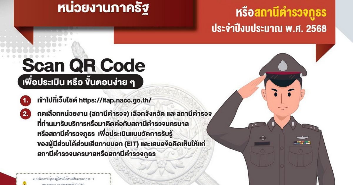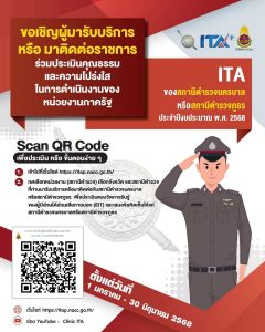 ขอเชิญผู้มารับบริการหรือมาติดต่อราชการร่วมประเมินคุณธรรมและความโปร่งใสในการดำเนินงานของหน่วยงานภาครัฐ ประจำปี 2568 10 มีนาคม 2025 โดย latyao_admin / ข่าวประชาสัมพันธ์,ITA,ข่าวประชาสัมพันธ์