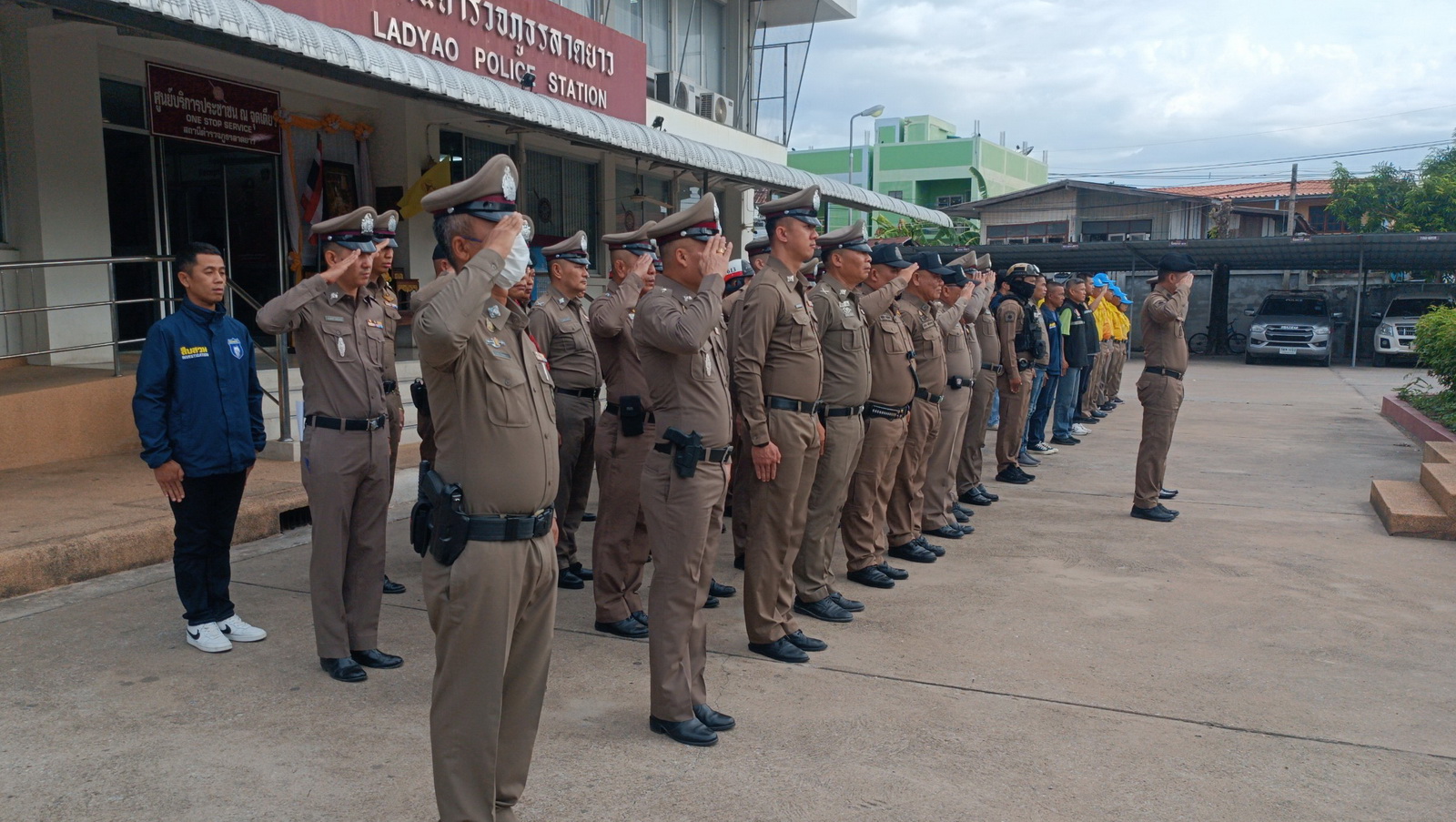 21 พ.ค.67 เวลา 08.00 น.พ.ต.อ.อาณุ ปิ่นทอง ผกก.สภ.ลาดยาว พร้อมด้วย ตร.สภ.ลาดยาว ได้ร่วมเข้าแถวเคารพธงชาติ สวดมนต์ กล่าวคำปฏิญาณ,อุดมคติตำรวจ ได้ชี้แจงข้อราชการและข้อสั่งการของผู้บังคับบัญชา ตรวจเครื่องแต่งกาย ทรงผม ณ บริเวณหน้าที่ทำการ สภ.ลาดยาว